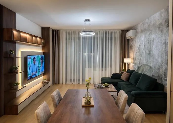 Apartmentul Belgrade Waterfront Premium Lux Apartment Sajmiste de 65 m² include o terasă și se află la 25 de minute de mers pe jos de Strada Knez Mihailova. Spațios oferă Wi-Fi și parcare privată gratuită pentru oaspeții care călătoresc cu mașina.